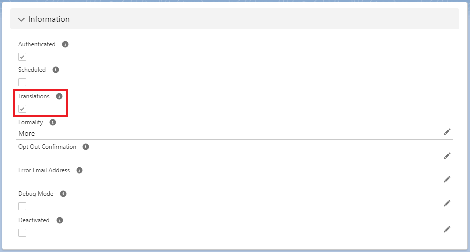 We create Primary Scope, Field Scope and Sender as in the example case described above for Schedules. For Recipients, we must also specify the "Language Field Name" field here. Here we enter "outbounz2__language__c".